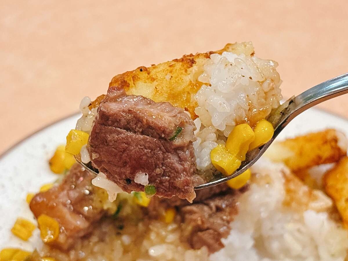 ライスにのせると、お肉が想像以上のボリュームで迫力があります。