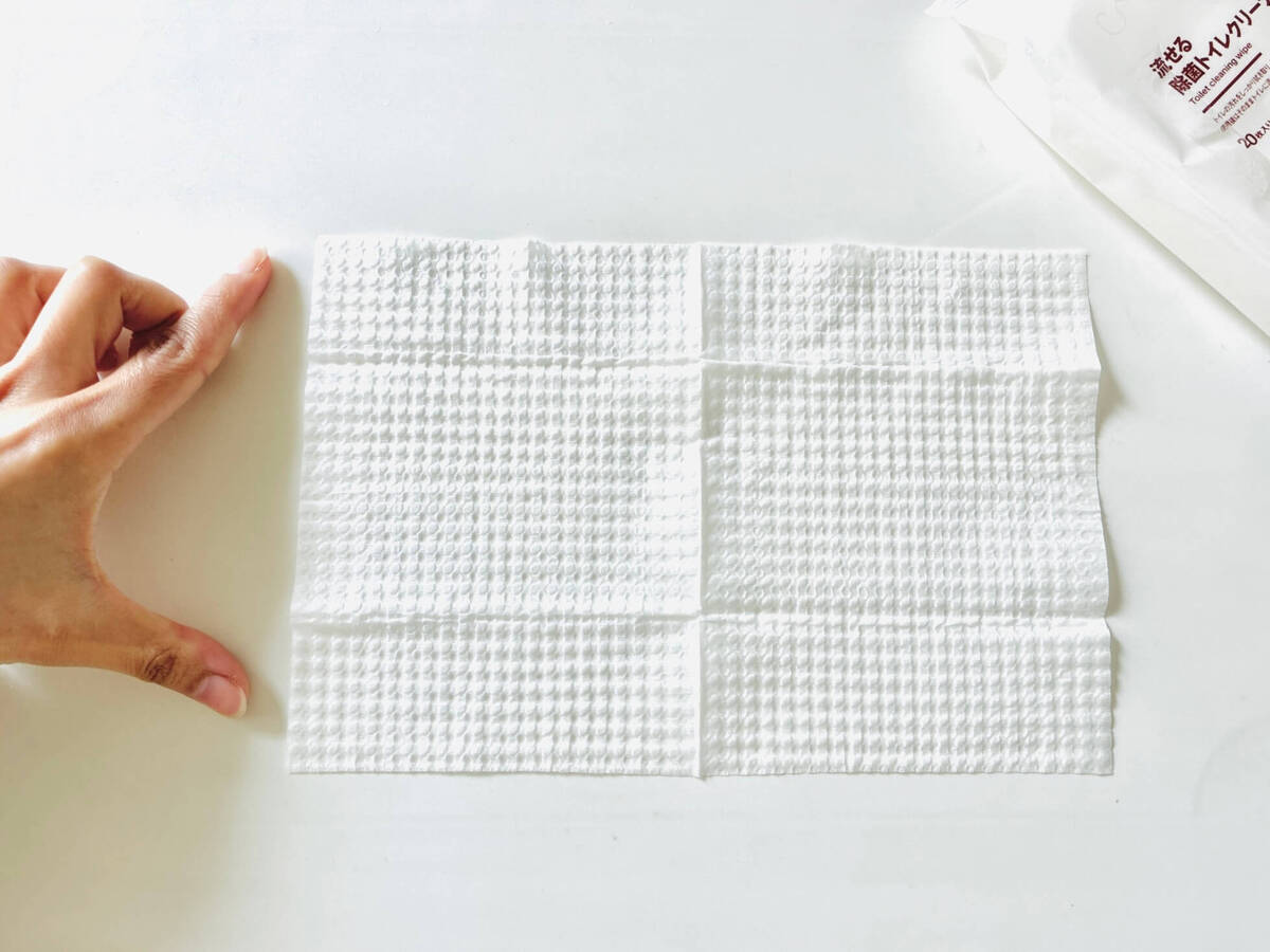 半分に折り曲げて、トイレ掃除のスタートです。