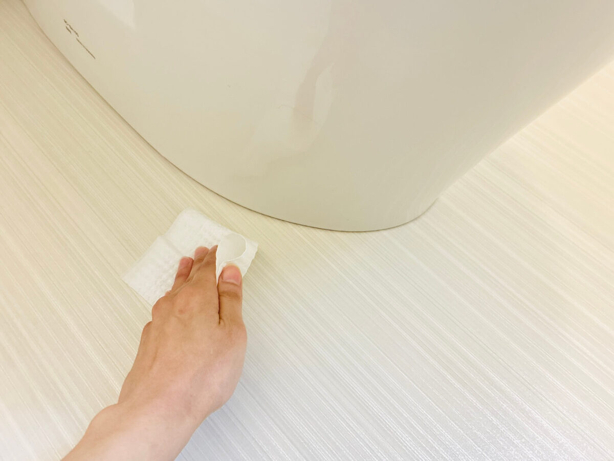 というわけで、たった1枚でトイレ周りの掃除ができちゃった。シートはそのまま便器にポイっと投げ込めば終了です♪