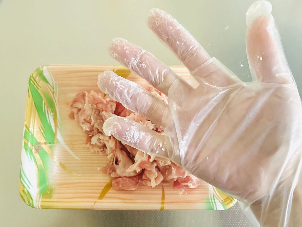 調理用の、手にフィットする使い捨て手袋。