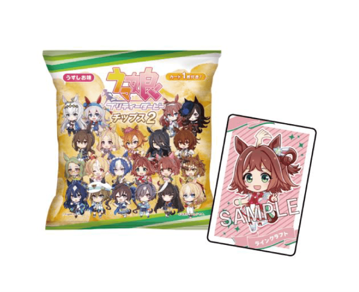 うすしお味のポテトチップスに、ウマ娘のカードがランダムで1枚付属(カード全30種)。