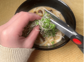 キッチンバサミを使えば、食べる直前に食べる分だけ手軽に刻むことができます。