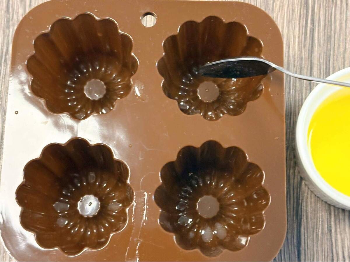 次に、少量の溶かしバター(分量外)を、カヌレ型の内側に薄く塗っておきましょう。