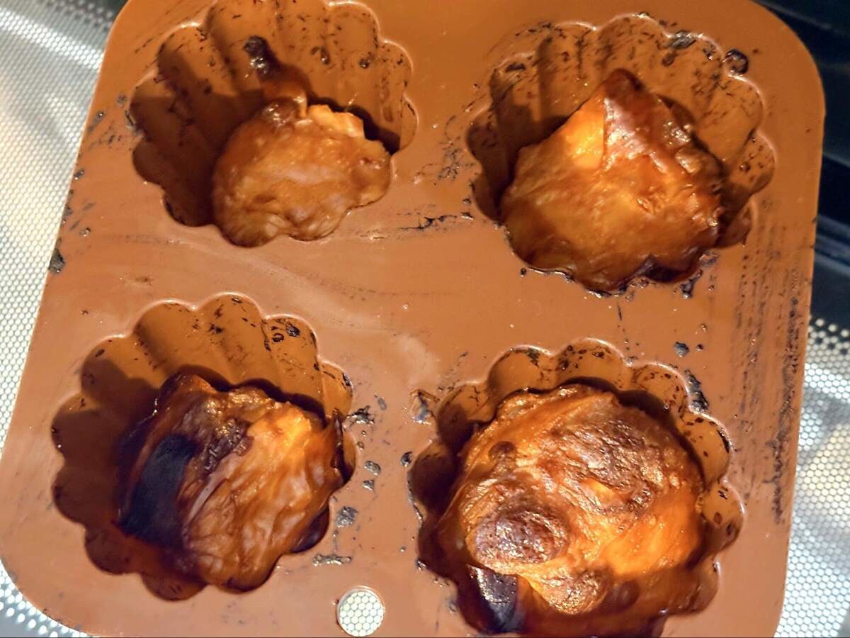 表面がこんがりしてきたら出来上がり。まだ少し不思議な見た目で「本当にカヌレになるの?」と少し不安になりますが、安心して型から外してください。
