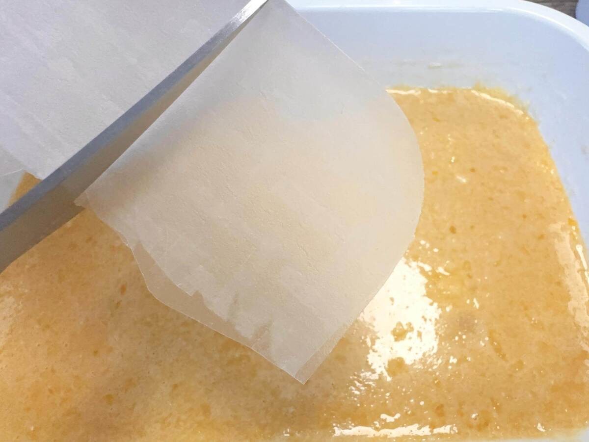 ライスペーパーを水で戻す必要はなく、砂糖や牛乳、バターを混ぜた卵液に浸してオーブンで焼くだけという手軽さです。