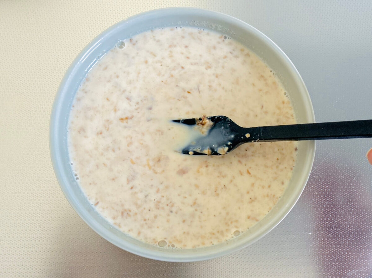耐熱の器が小さいばっかりに、混ぜる時も一苦労でした(笑)。