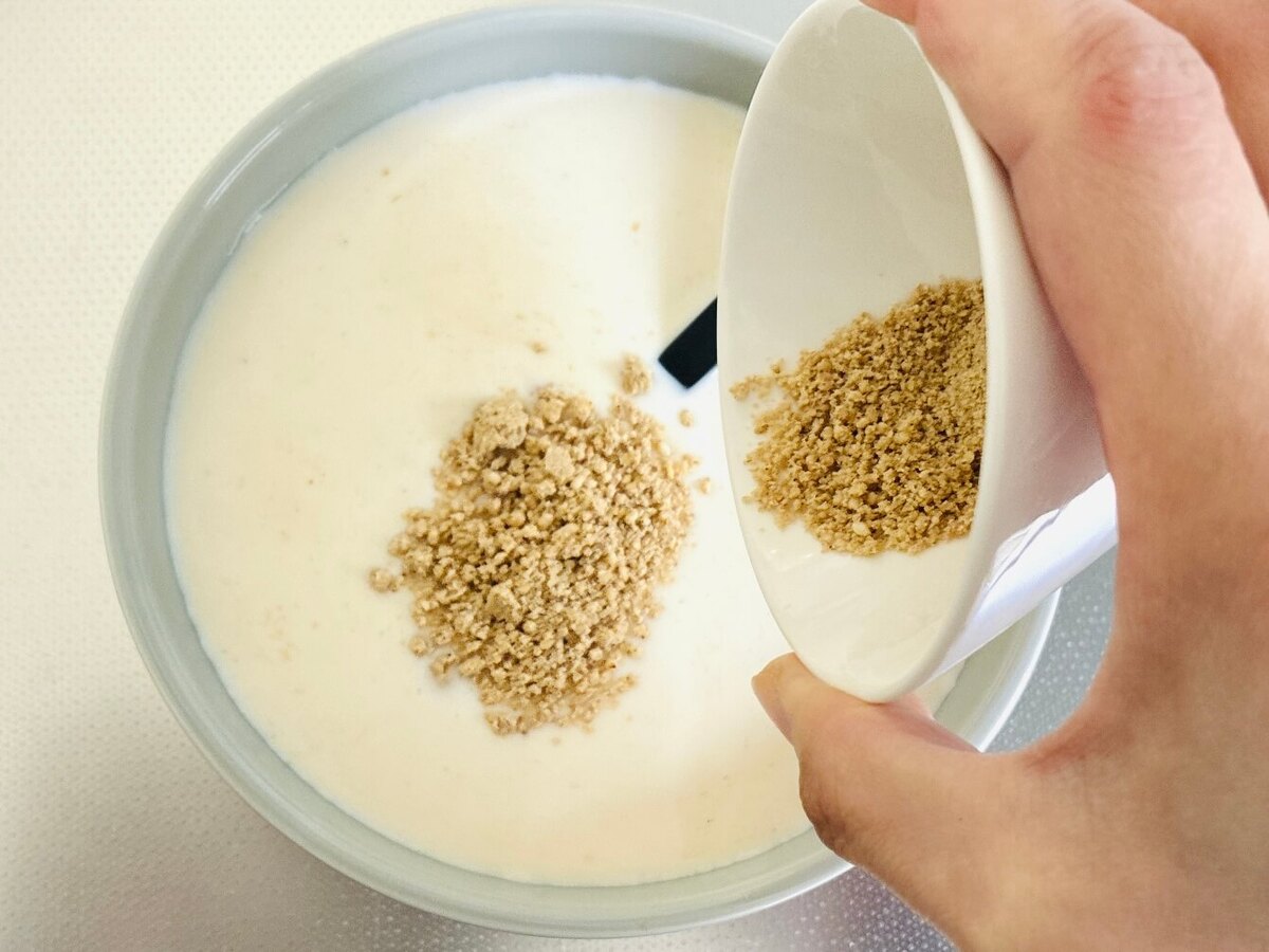 みそと砂糖が溶けたら、牛乳とすりごまを加えます。