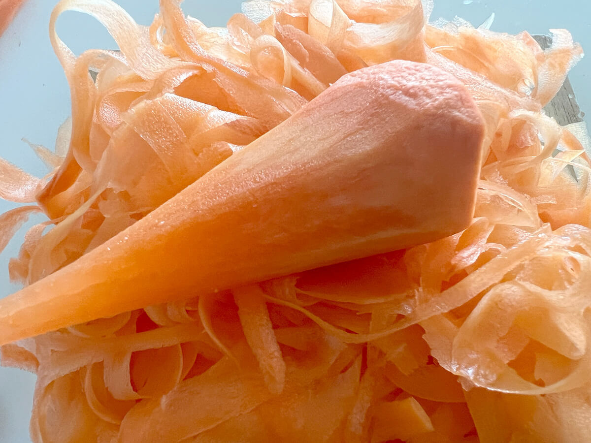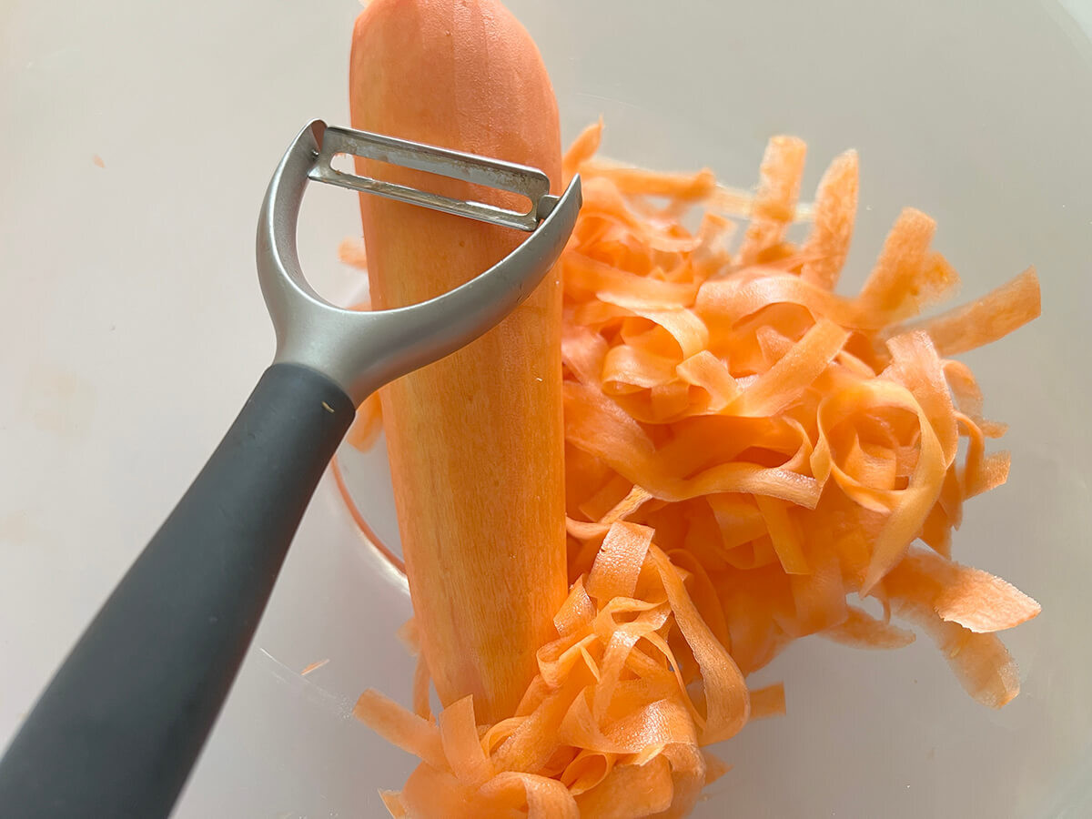 作り方①にんじんをピーラーでスライスする