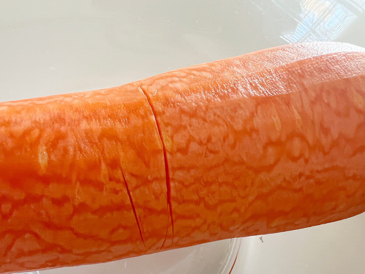 作業が難しくなってくる最後の小さくなった部分は、保存して他の料理に使いましょうということでした。かなり大きなにんじんだったので、このくらいで終了することにします。