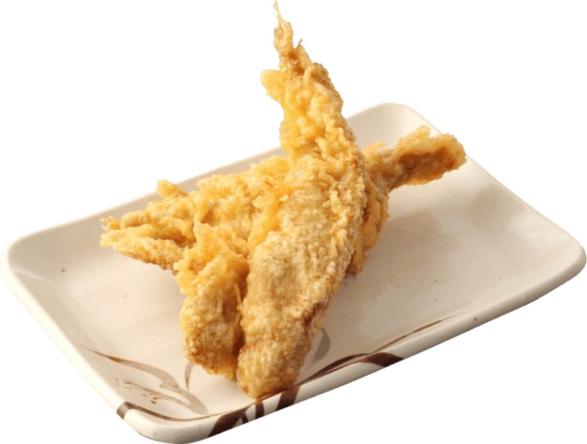 鶏のむね肉をにんにくやしょうがの効いた特製だれに漬け込み、固くなりすぎないよう絶妙な温度と時間で揚げています。そのまま食べても、打ち立てうどんと合わせて食べても、卓上のだしソースをかけるのもおすすめです。