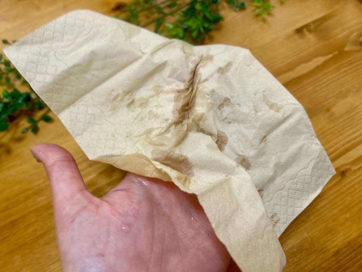 「普通のティッシュと何が違うの?」と思われがちですが、実はこれ、ティッシュよりも断然タフ。まるでキッチンペーパーのようなしっかりとした厚みがあるんです。