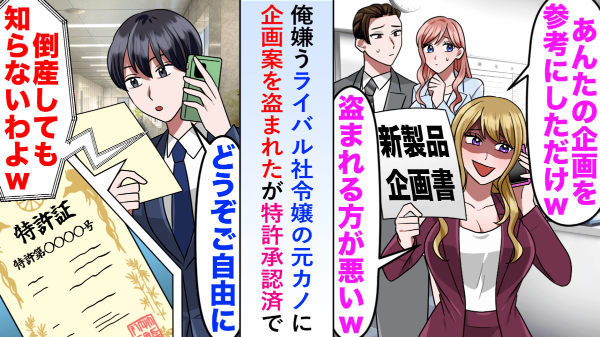 「盗まれる方が悪いw」僕を敵視するライバル社令嬢の元カノ→「どうぞご自由に」特許の罠で痛快な反撃!2026/04/13 -