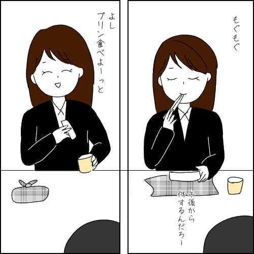研修初日は順調に進み、お昼休憩へ。ヨシダさんから「食堂のプリンが美味しくて人気」と教えてもらい、一さんは早速プリンを購入しました。