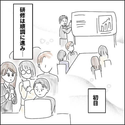 そんな懇親会での一幕を経て、いよいよ翌日から研修がスタート!担当の営業・ヨシダさんが爽やかに登場すると、佐々木さんのまわりにハートが!?もしかしてひとめ惚れ!?ドキドキ全開(笑)。