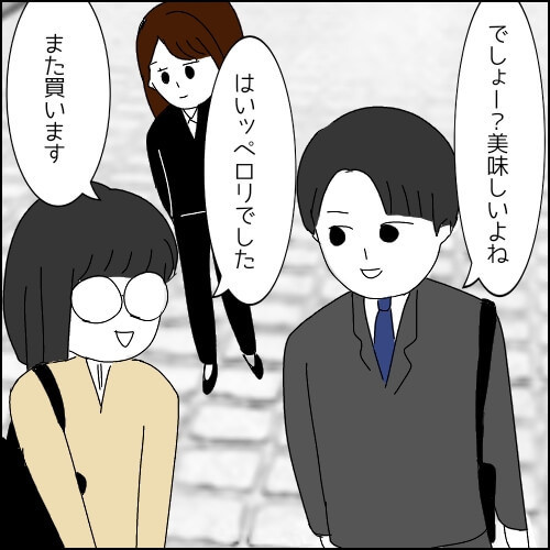 午後は外回りへ。佐々木さんはヨシダさんにさっそくプリンの話題で話しかけ、しっかり距離を縮めていました。「買った」という発言にモヤモヤ……。