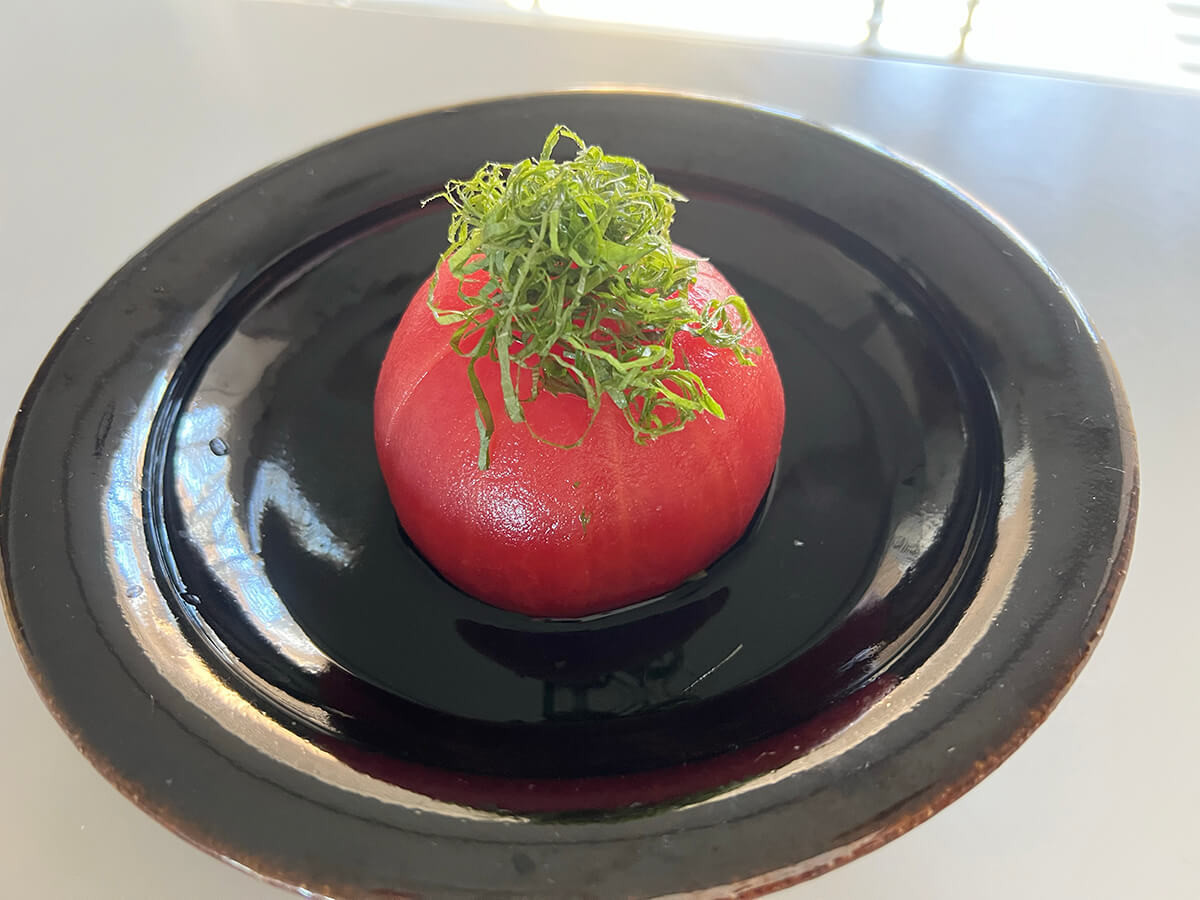 癖のないだしの味がトマトにしみていて、ひんやり冷たい口当たりも最高です。だしを飲んだりしながら、するする食べられてしまいます。