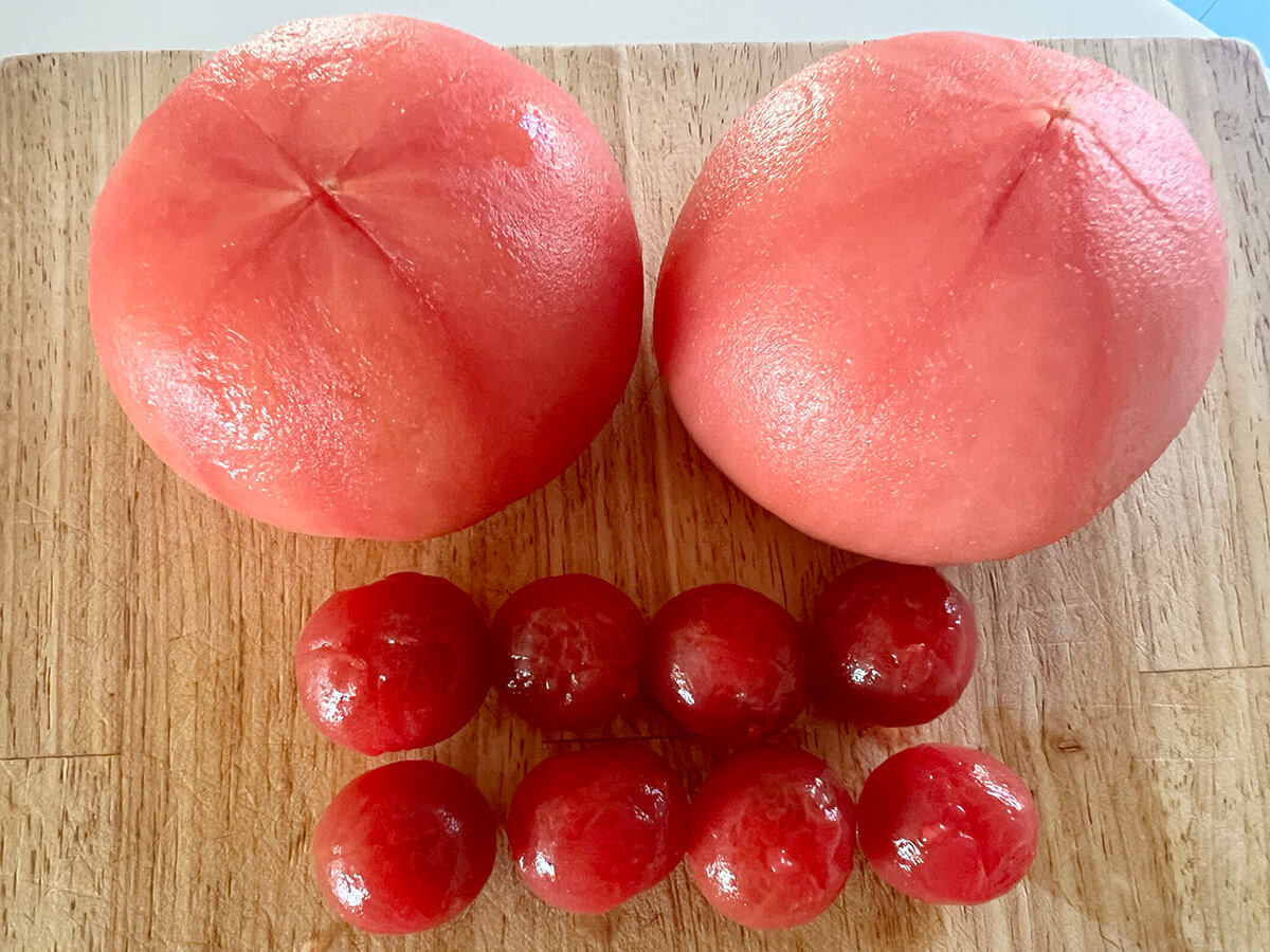 皮をむきましょう。あまりに可愛くて思わず並べてしまいます。