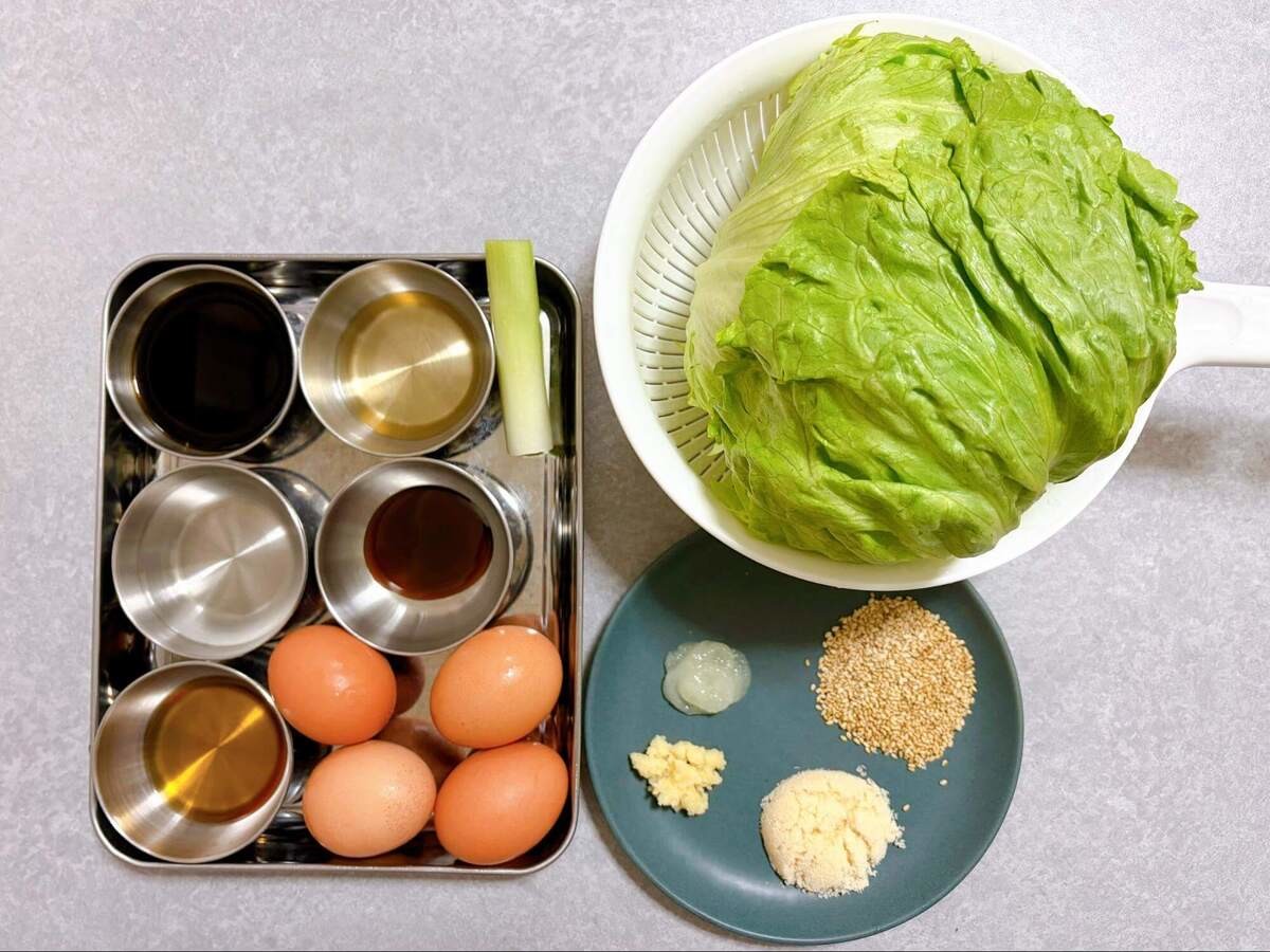 ねぎとごまをまとったレタスと卵にワクワクします。