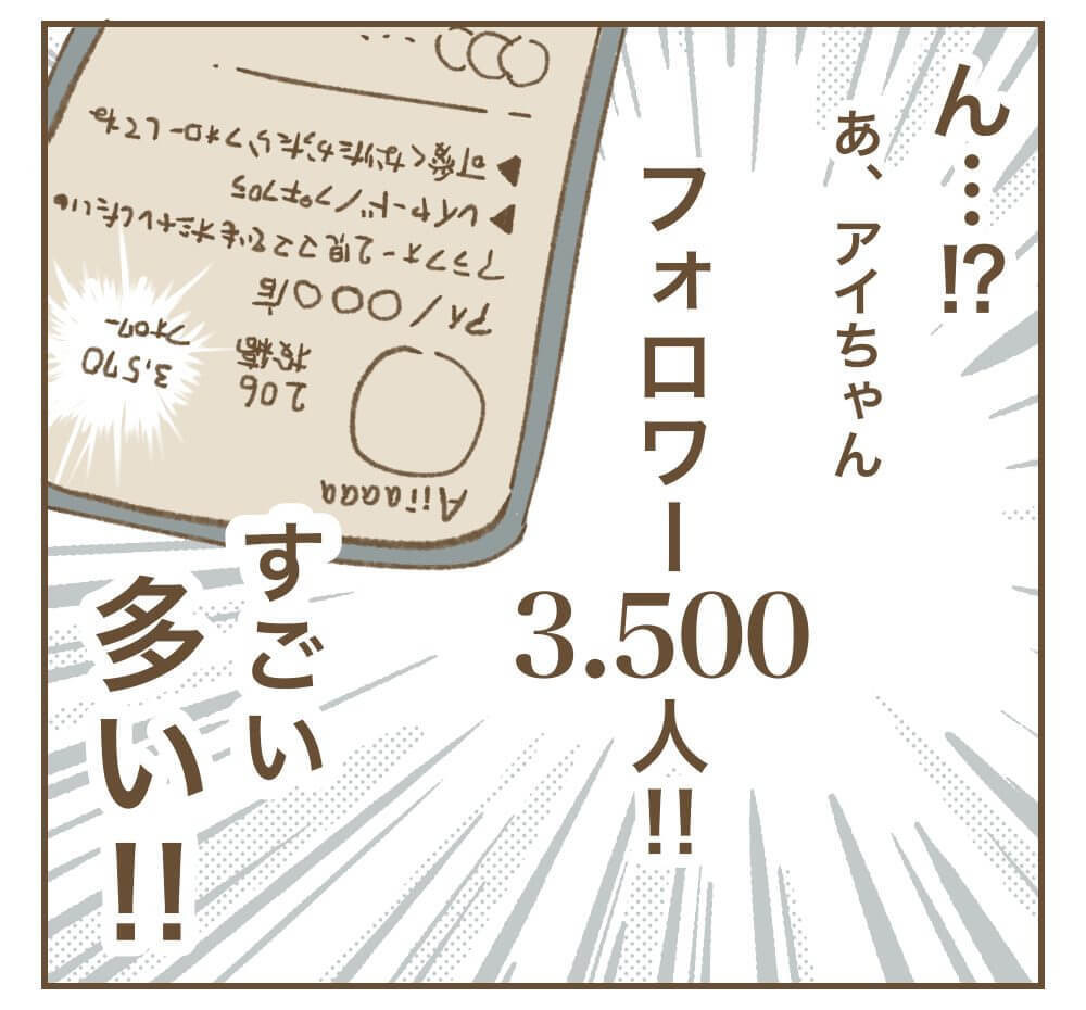 わざとらしくスマホを置いて、フォロワー数を見せつけるアイちゃん。そして驚くイオリさんを見て「フッ」とドヤ顔……!
