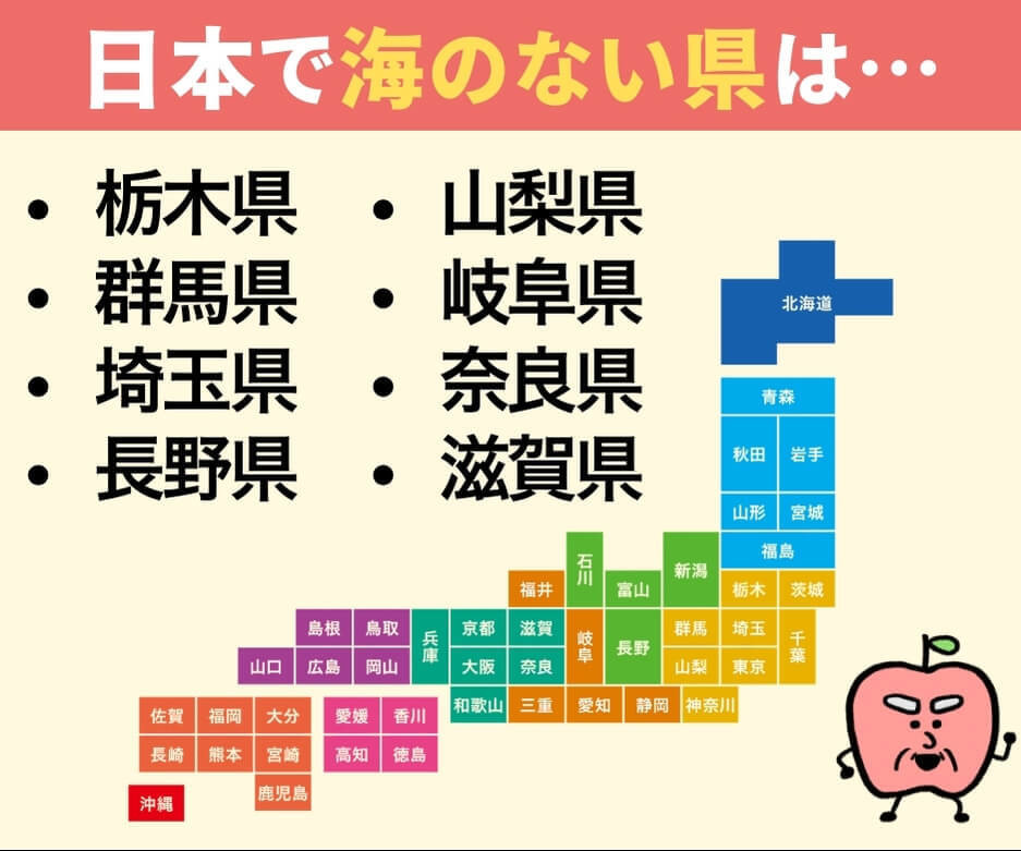 次に誰かと話すとき、「日本で海がない県って何県あるか知ってる?」とクイズを出してみるのも盛り上がるかもしれませんよ!