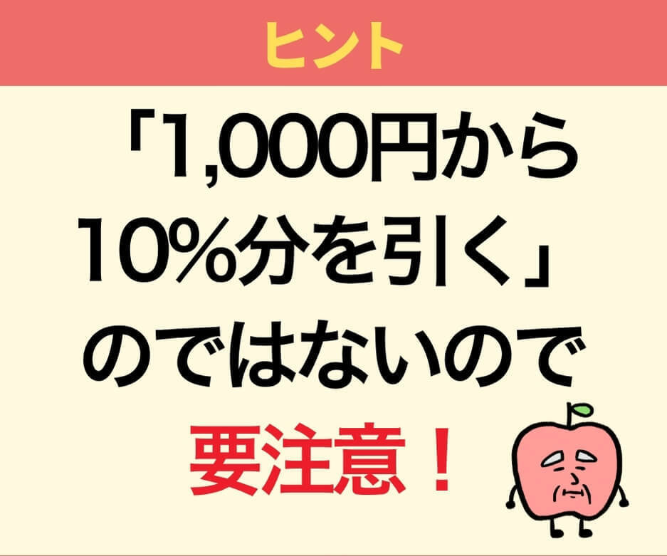 1,000円 - 100円(1,000円の10%) = 900円