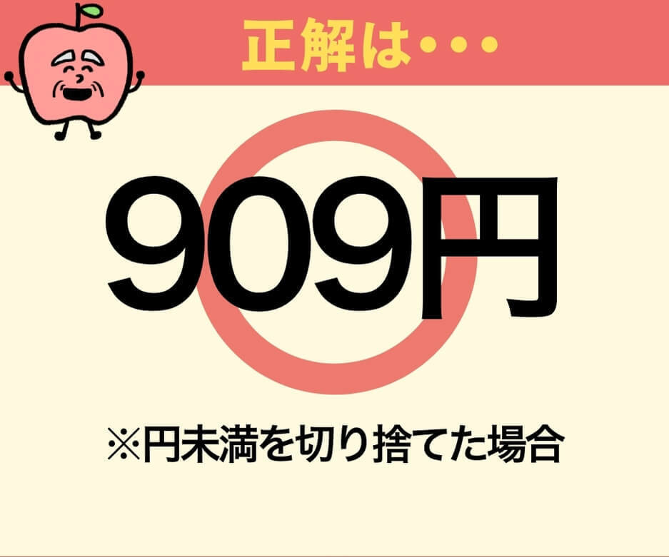 標準税率10%で計算すると、答えは「909円」です!