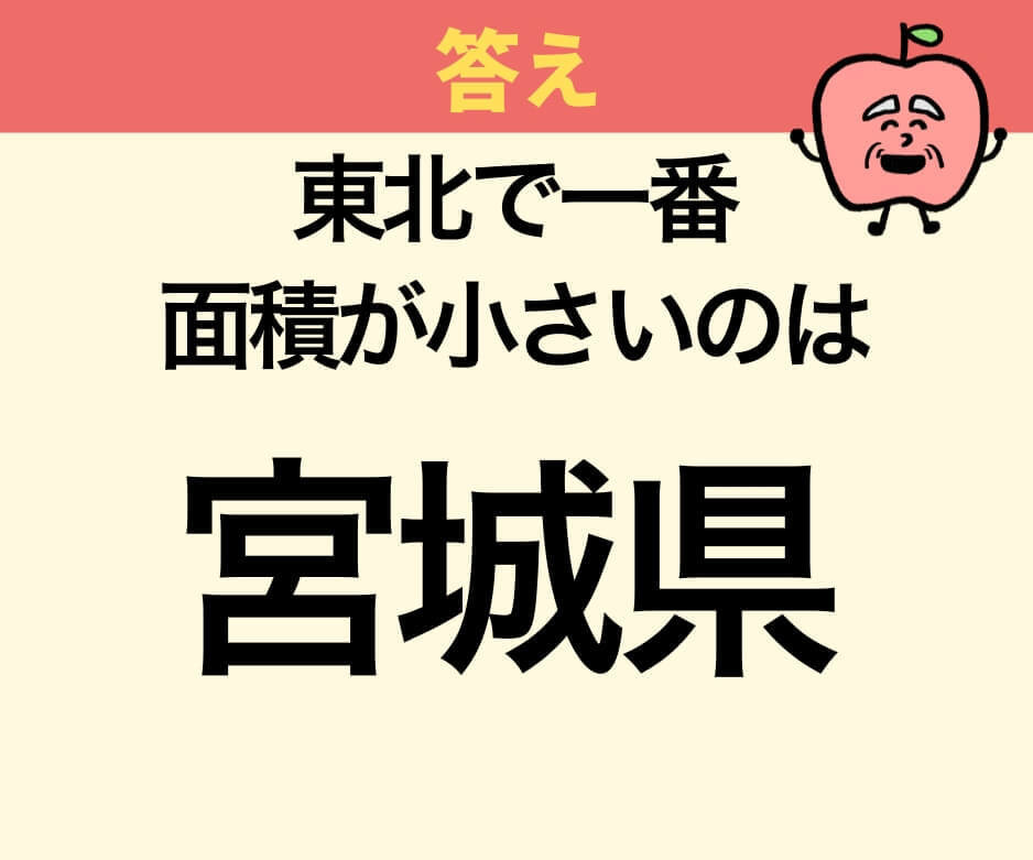 東北地方で一番小さな県は、宮城県(約7,282km²)でした!