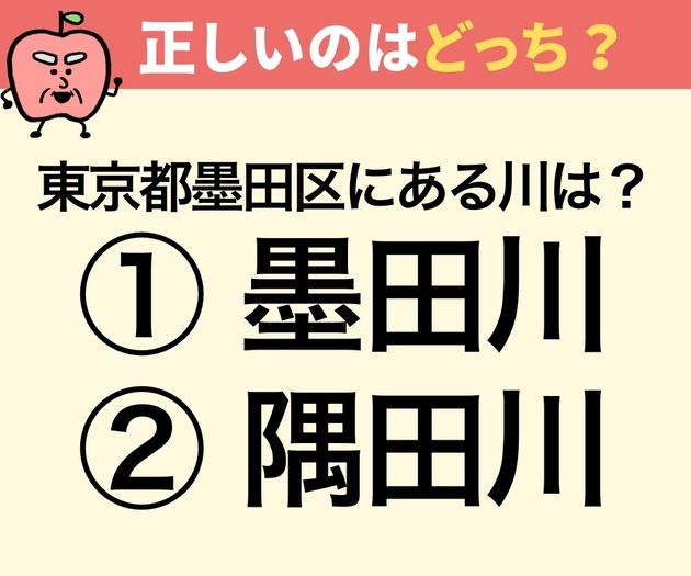 では、東京都墨田区にある「すみだがわ」の正しい漢字はどちらでしょうか?