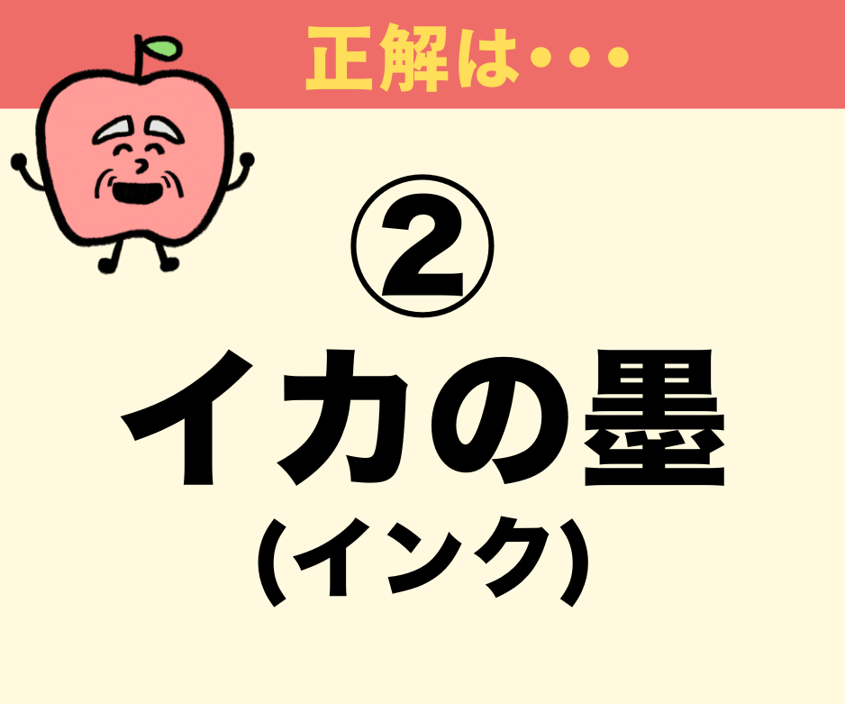 正解は… 2. コウイカ(イカ)の墨(インク) です!