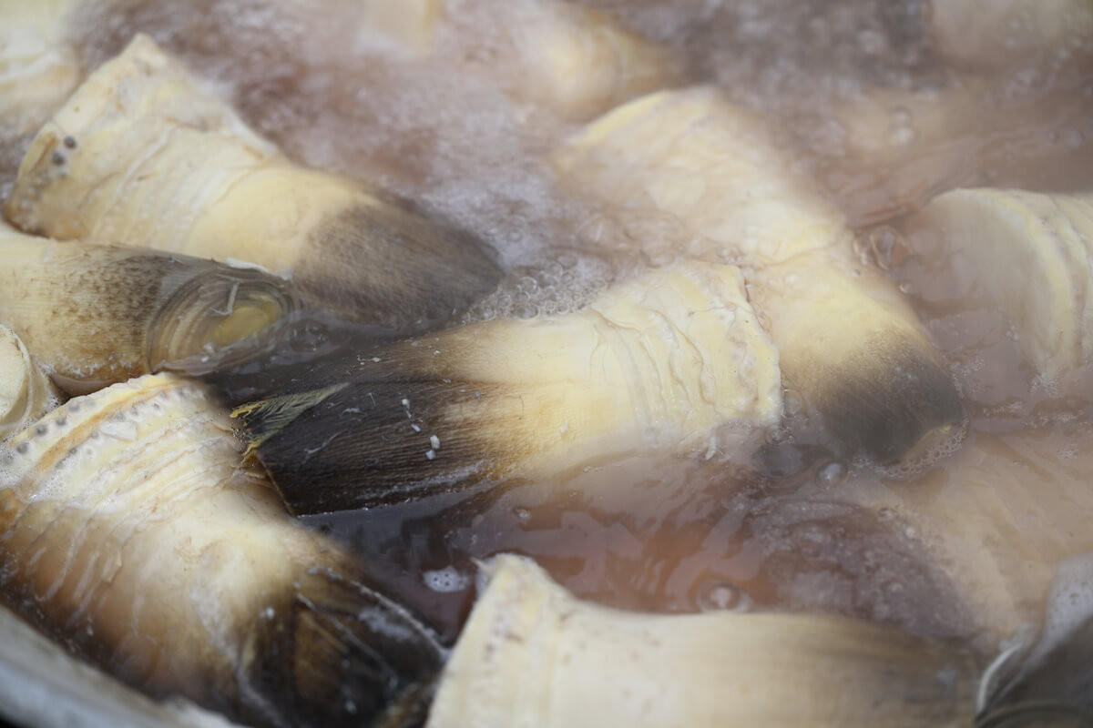 ゆっくりと冷めていく過程で、残ったアクがしっかりと抜けていき、えぐみのない上品な味わいに仕上がります。