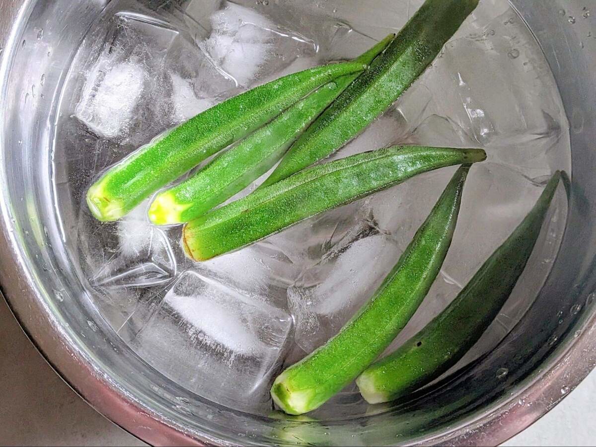 オクラを茹でた湯と氷水は、そうめんにも活用するので、捨てないようにしてくださいね。