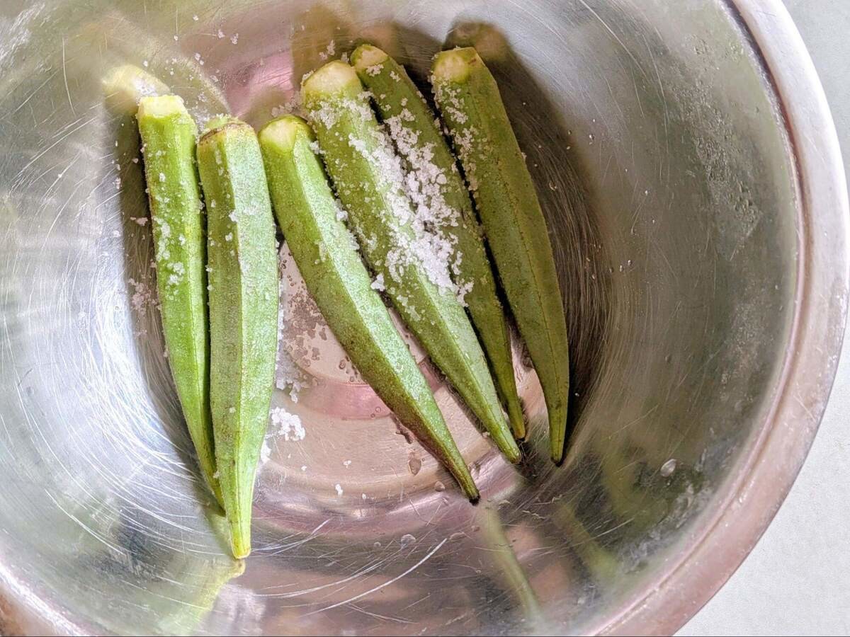 オクラを塩マッサージするように塩ずりしてくださいね。