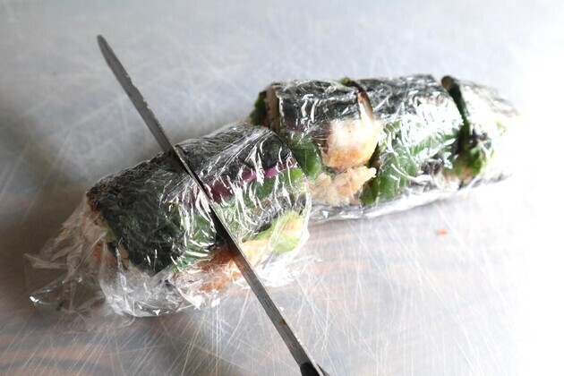 ラップの上から切り分けるため、崩れにくくパクッと食べやすい一口サイズに仕上がるのが嬉しいポイント。