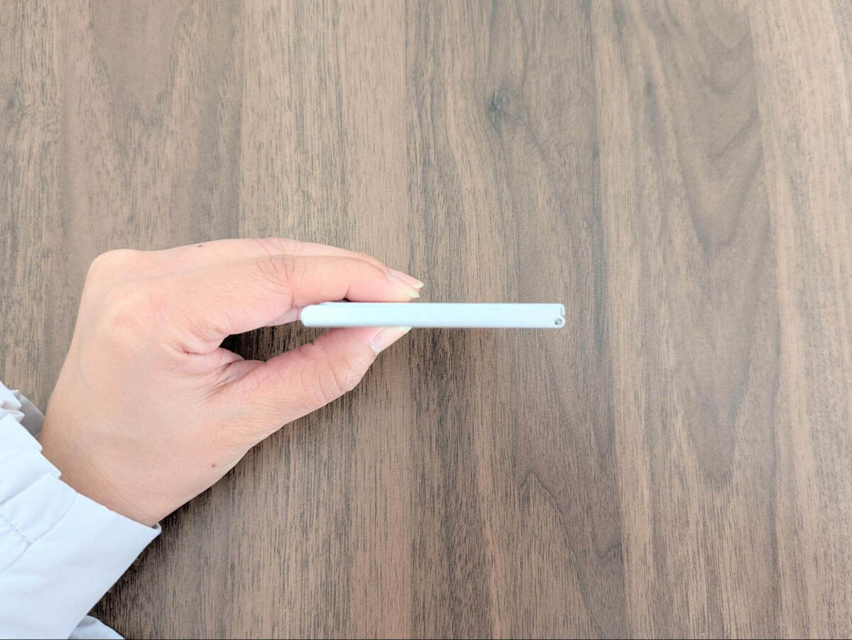 手のひらサイズで厚みもたった0.5cmとコンパクト。バッグはもちろんズボンのポケットにも入れやすいのが推しポイントです。