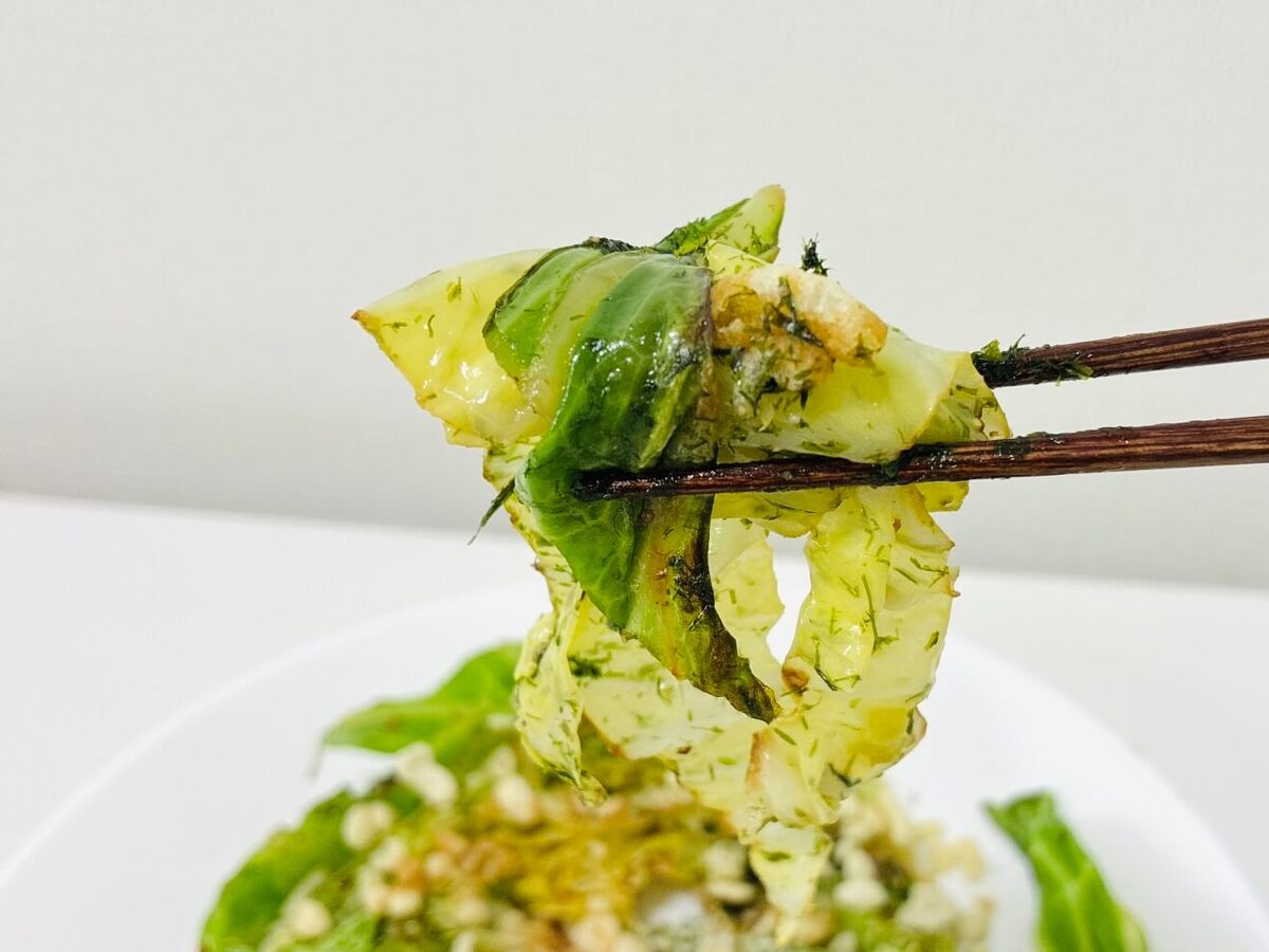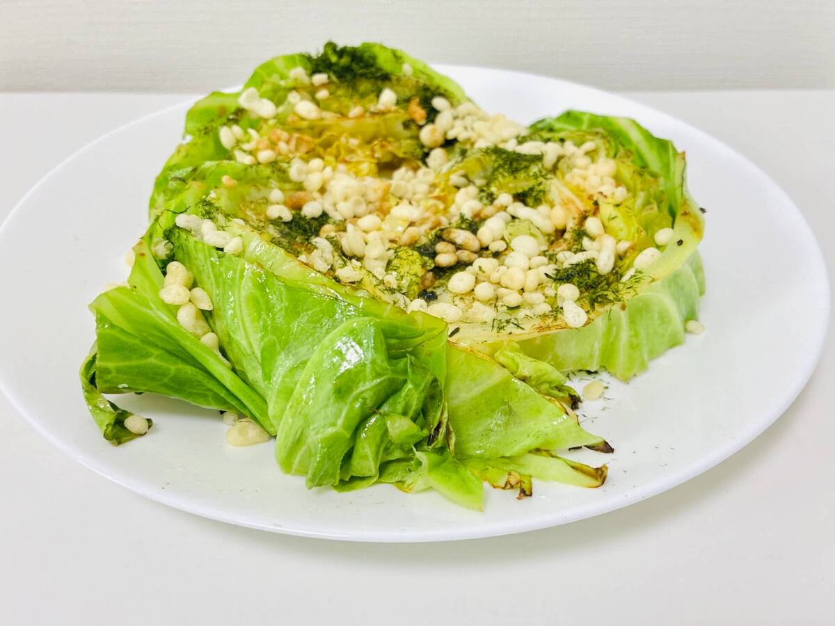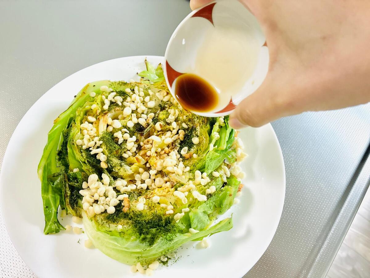 作り方③春キャベツに味付けとトッピングをする