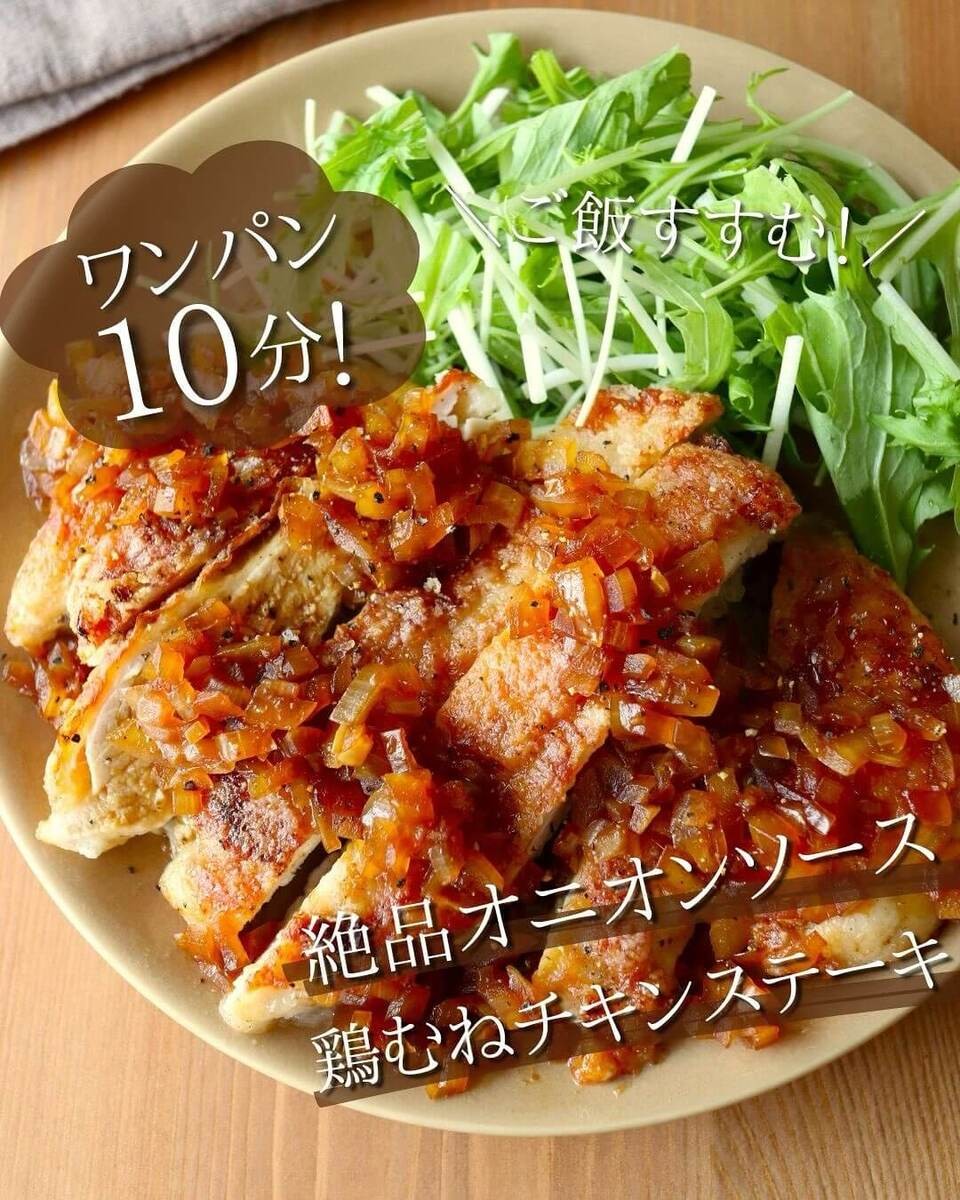 今回ご紹介するのは、時短レシピを発信しているインスタグラマー「京(みさと)」さんの「鶏むねチキンステーキ☆オニオンソース」。