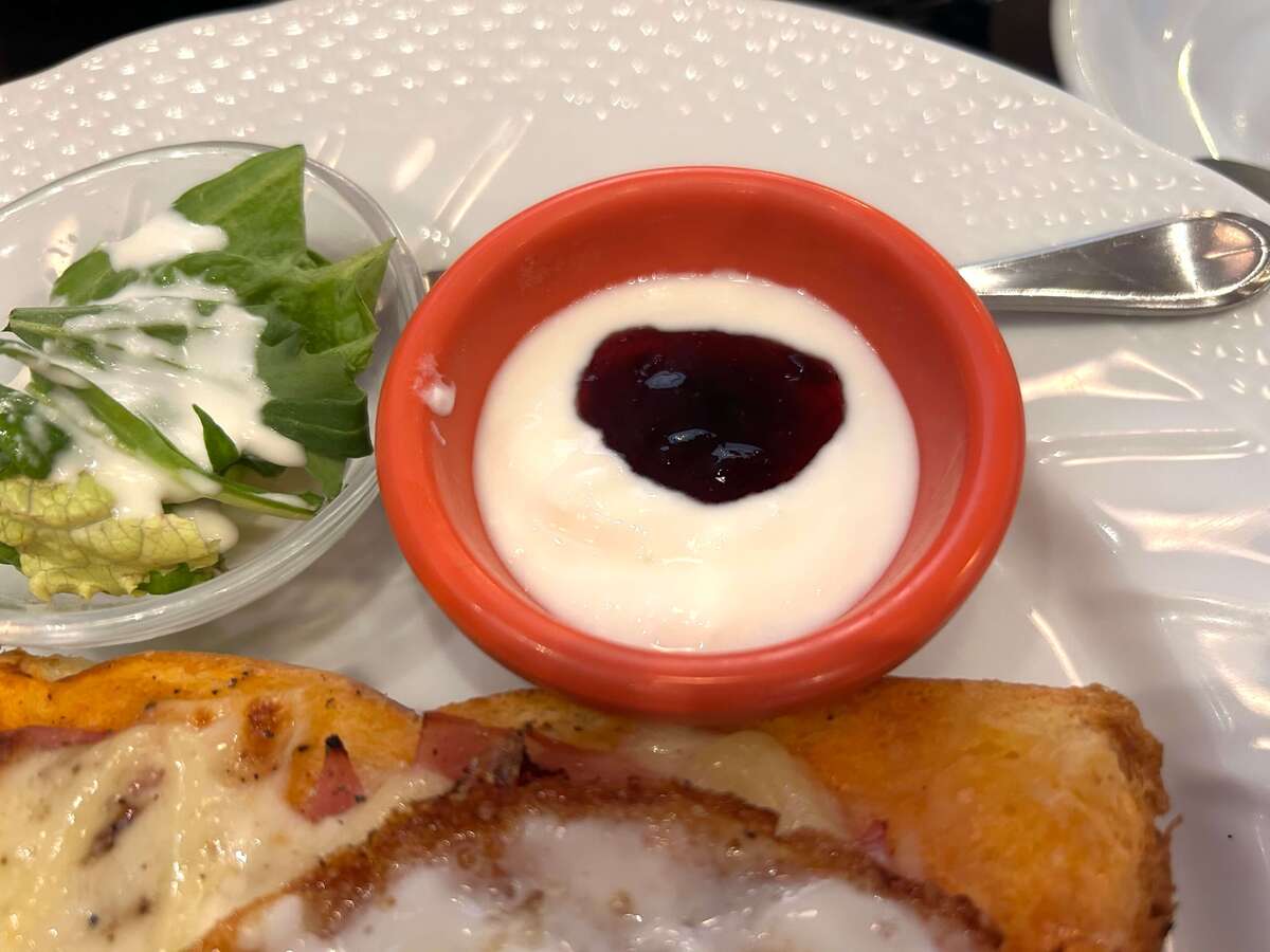 デザートはヨーグルト。ブルーベリージャムがかかっているのが嬉しいですね。