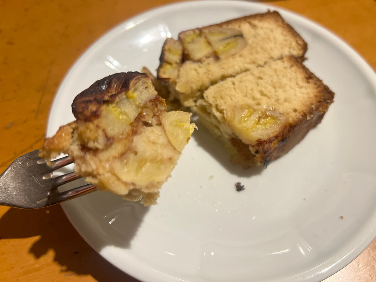 火が通り、質感はねっとり風味を増し、ごろっと入ったバナナの存在感がすごいです。甘みだけじゃなくて、酸味もちゃんと感じられます。レモン汁の仕業でしょうか。