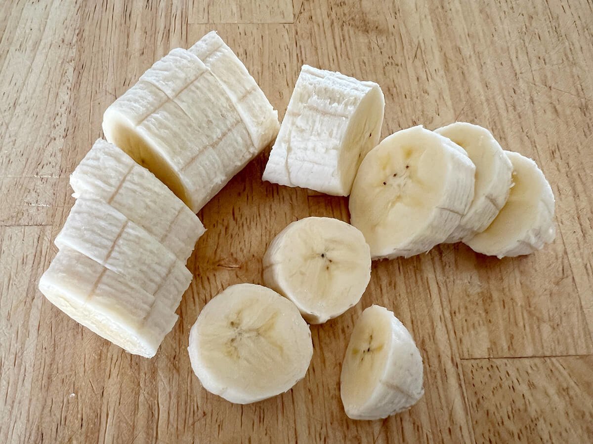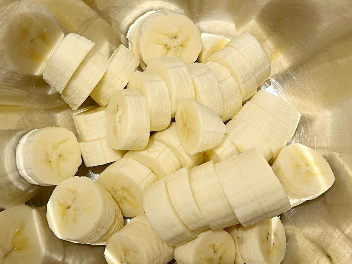 バナナは皮をむき、1cm幅にカットしておきましょう。