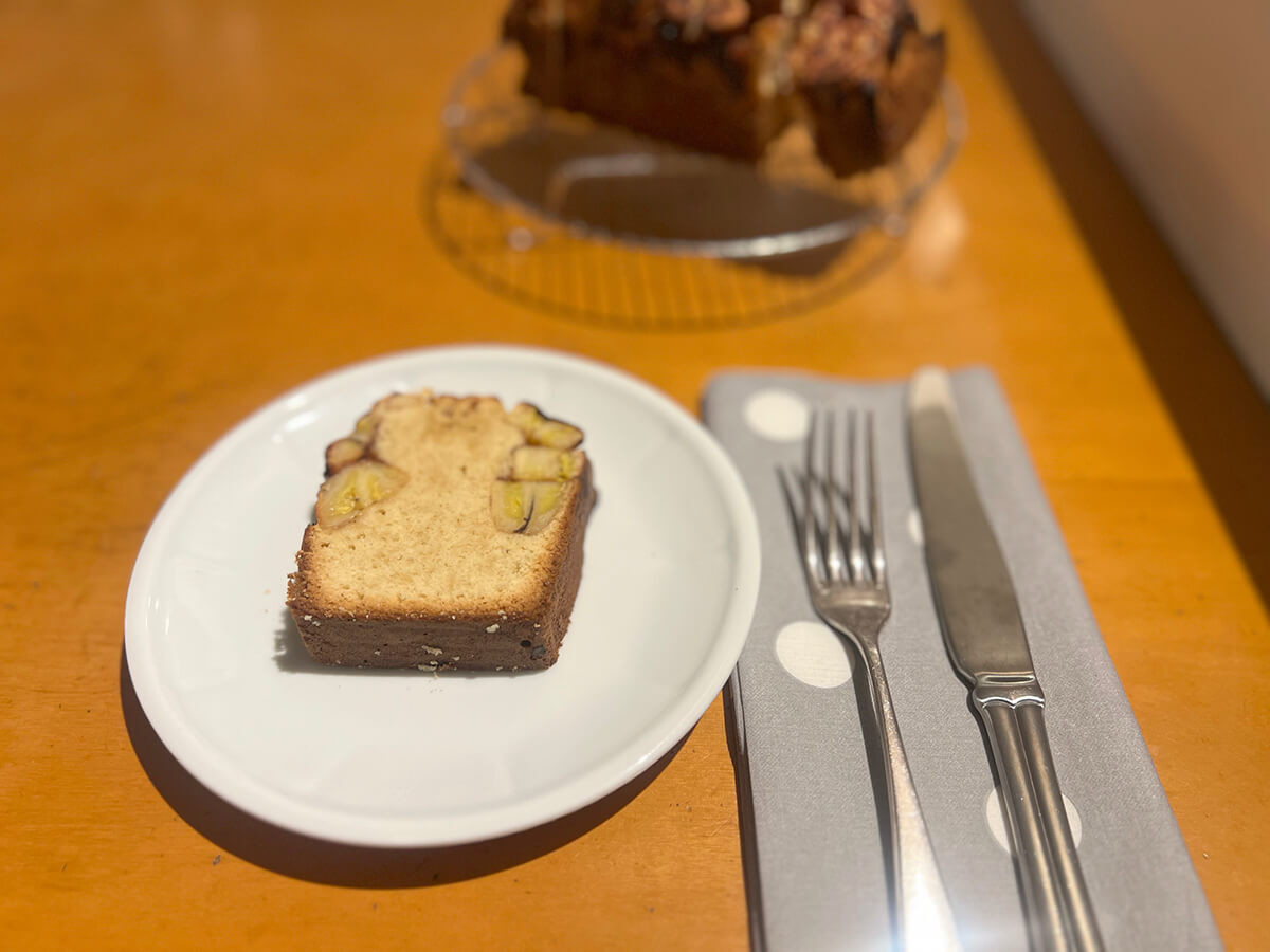 ベーキングパウダーを使わずに作ったのもあり、テクスチャーは少しどっしりしています。全体的に素朴な味。こういうタイプのケーキが好きなので、楽しみながらいただきました。