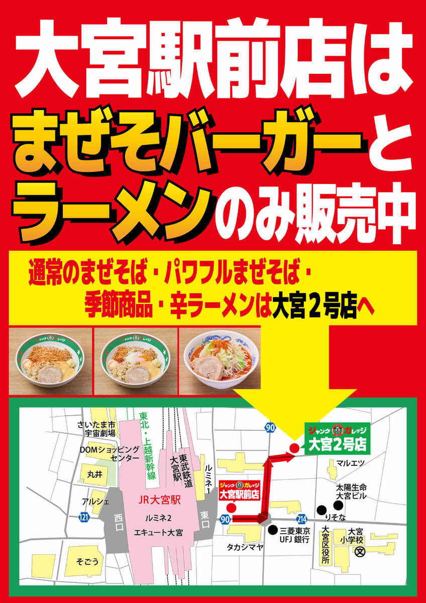 「いつものジャンクガレッジのまぜそばが食べたい」というお客様には、大変恐縮ながら近隣の「ジャンクガレッジ 大宮2号店」をご案内させていただきます。