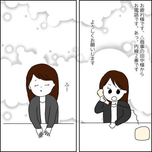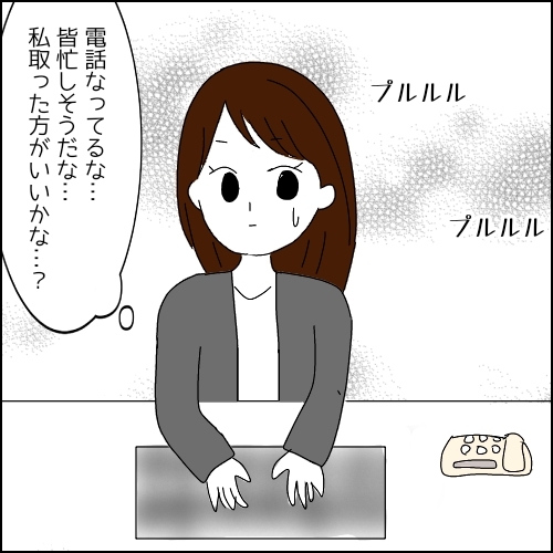 【漫画】オフィスに鳴り響く電話「取ったほうがいいのかな」新人が勇気を出して行動した結果…【まとわりついてくる同僚の話⑦】