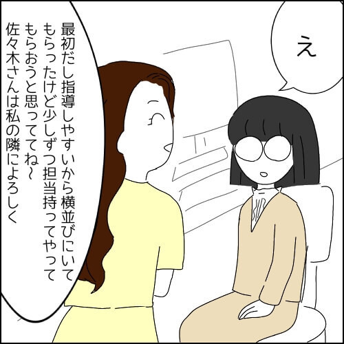 その後藤さんから「来週から席移動するね」と、佐々木さんにとっては青天の霹靂のお知らせ。入社式で隣に座って以来べったりの一さんから席が離れてしまい、一さんは佐々木さん憧れのヨシダさんグループの島へ……。さらに、一さんの隣は、ベテランおっとり系の先輩が。頑張る一さんが報われた形ですが、佐々木さん、これにはかなりショックを受けたのでは。