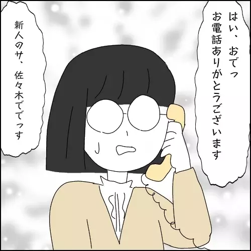 営業に配属されて1週間がすぎた一さんと佐々木さん。「先輩に出てって言われるまで出たくない」宣言をしていた佐々木さんでしたが、とうとう先輩からお声がかかってしまって年貢の納め時。