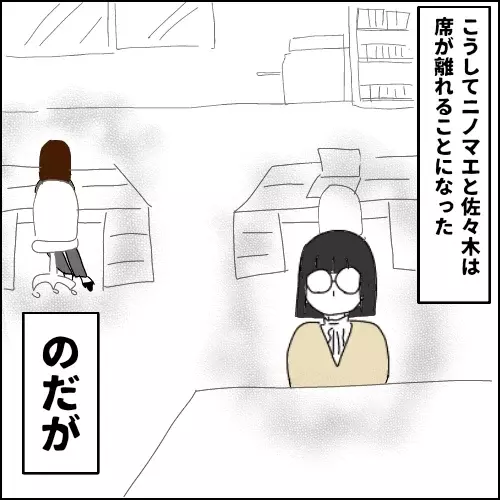 案の定、新しい席になっても佐々木さんは一さんのほうをチラチラ。いやいやいや、仕事、しましょーよ!