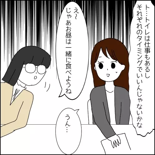 「どんな感じ?仕事は」勤務中もトイレまでつきまとい行動!いい加減ウザすぎる〜【まとわりついてくる同僚の話⑪】