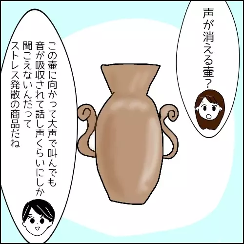 さて後半、外回りから戻ったシタナガさんがお土産を持ってきてくれました。その名も「声が消える壺」! 壺に向かって叫んでもぜんぜん聞こえないというストレス発散グッズです。「おっとりしてるから必要ないかもだけど、たまにはスカッとしてくださいね」というシタナガさんの言葉が、なにやら伏線に思えてならんのです。