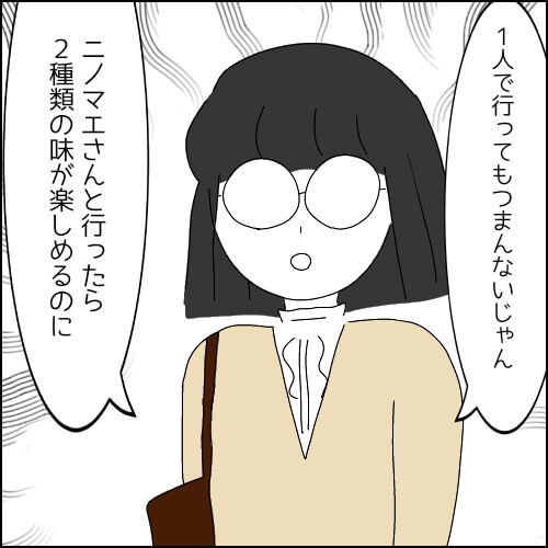案の定……はい、出ました!今回も「お互い違うの頼んで一口交換したらいいんだよ」って……。勝手に決めないで〜。そんなことしたら、2個ともほぼ佐々木さんの胃の中に消えるに決まってます!!!