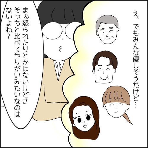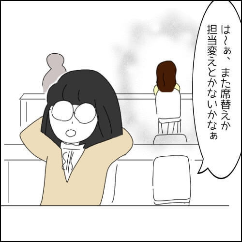 さらに「私の担当してる所って営業マンおじちゃんばっかだし つまんないよね〜」発言。一さんが「みんな優しそうだけど…」とフォローしても「やりがいみたいなのはないよね〜」と不満タラタラ。いやいや、お世話になっているチームのメンバーをそんなふうに言うのはどうなの……! 挙げ句「席替えか担当変えとかないかなぁ」って、まだ配属されて間もないのに……。
