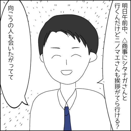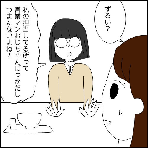 営業さんとの外回りを「一緒ってズルいなぁと思って」って…仕事、ナメてる!? 仕事も人も選り好みする同期に天誅を!【まとわりついてくる同僚の話⑮】